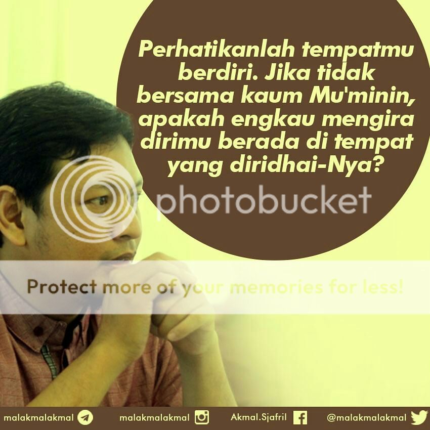 Banyak yang lupa bahwa keadaan kita sangat tergantung dengan orang-orang di sekeliling kita. Sebagian orang merasa baik-baik saja berada di tengah-tengah barisan orang-orang kafir dan munafiq, padahal Allah SWT mengingatkan kita agar bertaqwa sebenar-benarnya dan jangan mati kecuali dalam keadaan Islam (QS. 3: 102), kemudian dilanjutkan dengan peringatan agar tidak memutus tali Allah dan berpecah-belah (QS. 3: 103). Kita semua memperjuangkan akhir yang indah dari hidup kita. Jika Anda berada di barisan orang-orang kafir dan munafiq, apakah Anda yakin akan mati sebagai seorang Muslim? Pikirkanlah sebelum Anda memilih hendak berpihak ke mana, sebab tak ada tempat di akhirat kelak kecuali Surga dan Neraka.